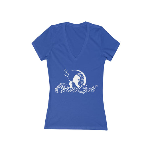 Chic Women's Deep V-Neck Tee, - Stoner Girl® Casual Top, Fashion Shirt, Everyday Wear, Summer Essentials, Gift for Her, Trendy Wardrobe Staple